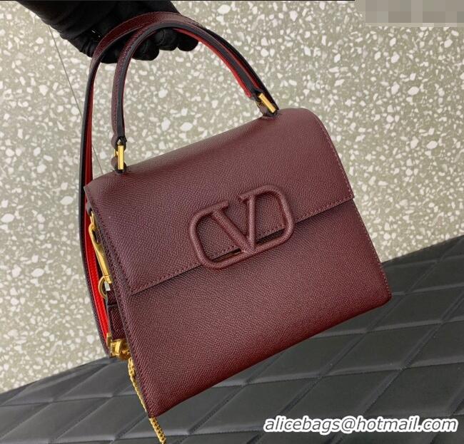 Big Discount Valentino Small VSLING Grainy Calfskin Handbag 2727 Dark Burgundy 2025