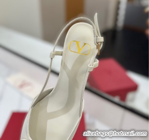 Big Discount Valentino VLogo Signature Slingback Pumps 4.5cm in Matte Calfskin All White 2025 VA082110