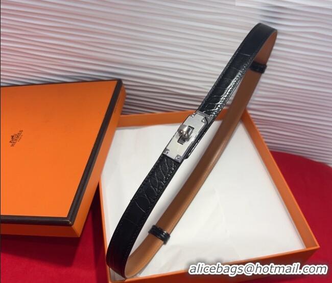 Top Design Hermes Kelly Duo Belt 1.8cm in Crocodile Embossed Calfskin with Metal-Tone Buckle H2011025 Black/Silver 2025