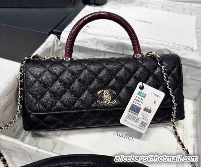 Cheap Discount Chanel Grained Calfskin Long Maxi Flap Bag with Top Handle AS6091 Black/Burgundy 2026