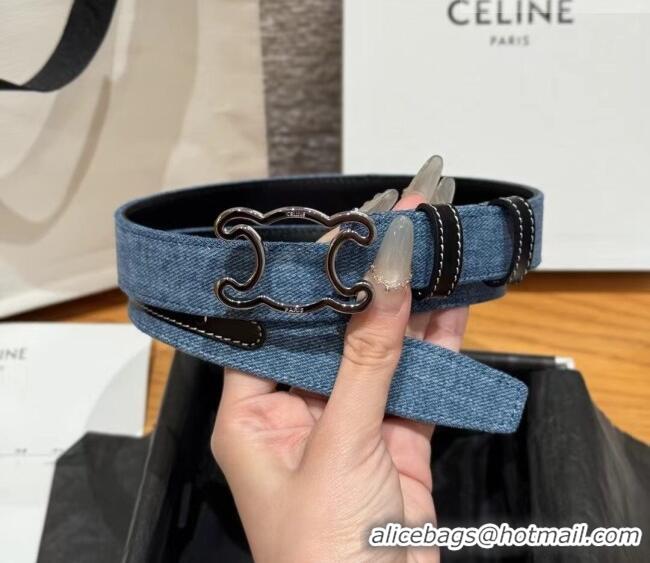 Buy Cheap Celine Denim and Leather Belt 2.5cm with Cutout Triomphe Buckle CE091101 Blue/Black/Silver 2025
