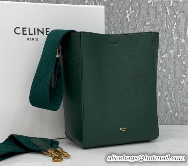 Buy Fashionable Celine Seau Sangle Small Bucket Bag in Supple Grained Calfskin 2088 Green 2024
