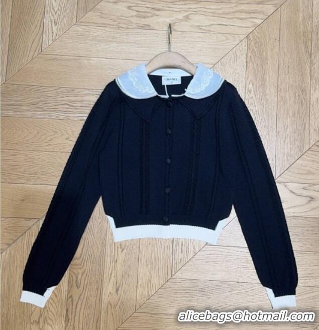 Buy Cheap Chanel Cotton Wool Cardigan with Mesh Trim 1015 Black 2025