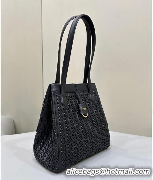 Buy Cheap Fendi Origami Medium Bag in Interlaced Leather that can be transformed 8626D Black 2024 TOP