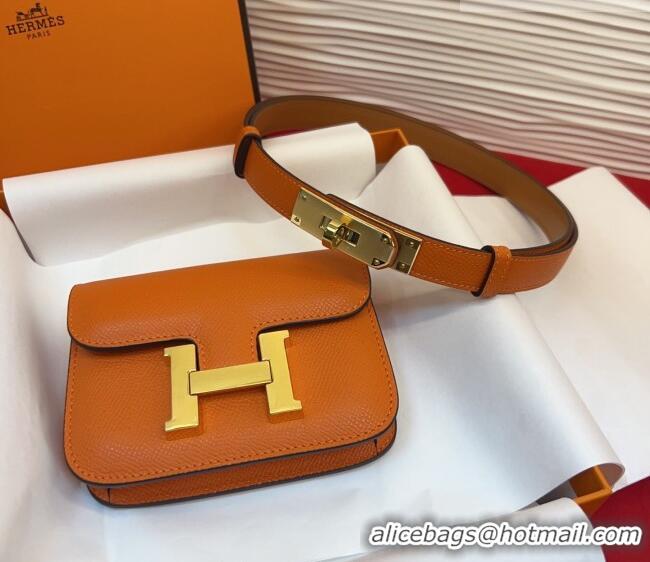 Buy Cheap Hermes Kelly Buckle Slim Pouch Belt in Grained Calfskin with Gold Hardware 0104 Orange 2026