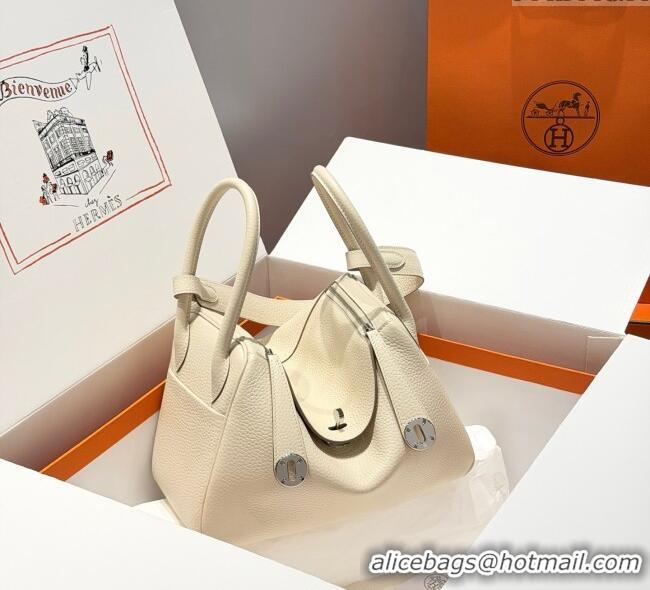 Buy Cheap Hermes Lindy Bag 26cm in Clemence Leather 2637 Cream White/Silver 2025 (Half Handmade)