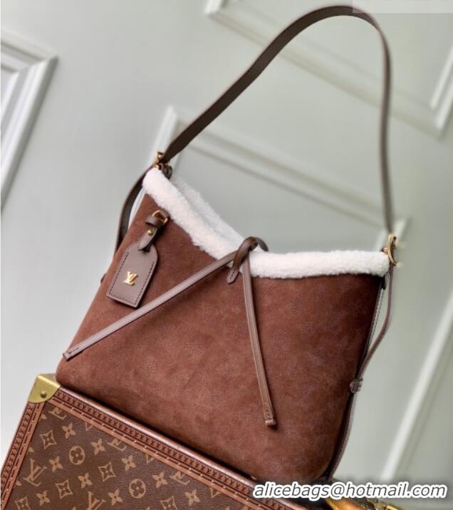 Buy Cheap Louis Vuitton CarryAll PM Bag in Mahina Suede M26421 Dark Brown 2026