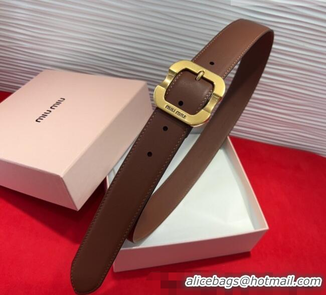 Super Quality Miu Miu Calfskin Belt 3cm with MIU Buckle MM102201 Brown/Silver 2024