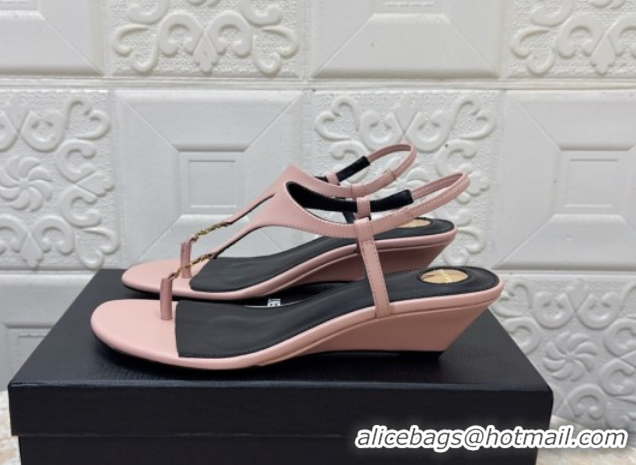 Buy Cheap Saint Laurent Cassandra Wedge Thong Sandals 3.5cm in Calfskin Light Pink 0825123