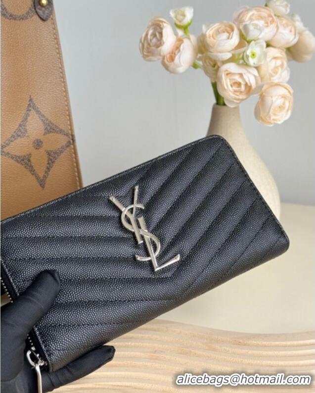 Discount Saint Laurent Cassandre Matelasse Zip Around Wallet in Grained Leather 358094 Black/Silver 2025