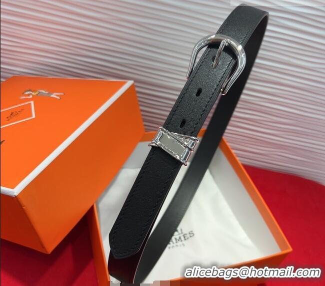 Buy Cheapest Hermes Ecuyere Leather Belt 2.4cm 0617 Black/Silver 2025