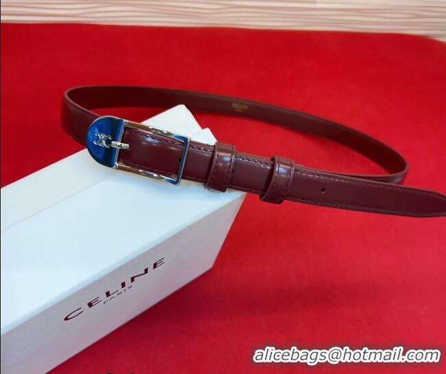 Buy Classic Celine Shiny Calfskin Leather Belt 1.8cm with Pin Buckle CE031603 Dark Burgundy/Silver 2026
