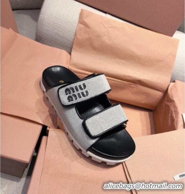 Buy Classic Miu Miu Canvas and Leather Platform Slides Sandal 3cm 5XX658 Black 2025