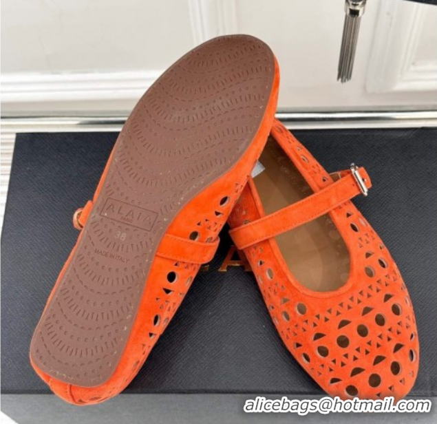 Buy Discount Alaia Ballet Flat in Openwork Suede Orange 0224042