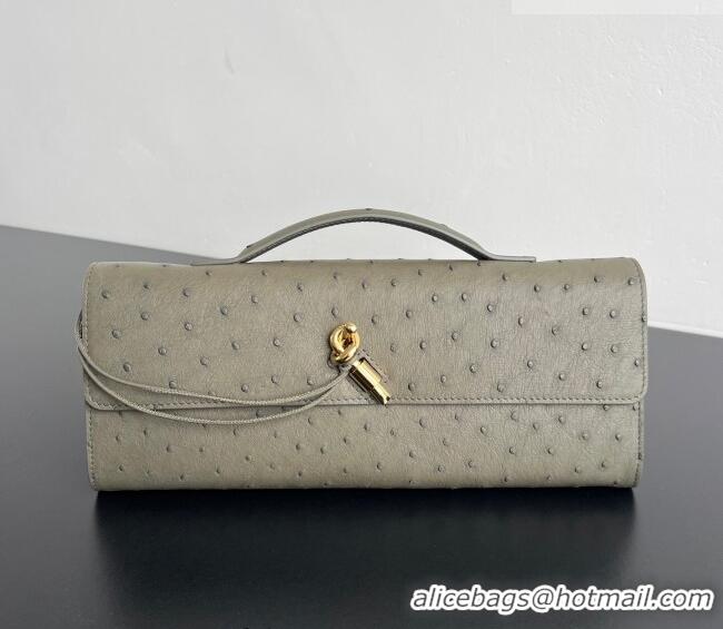 Luxury Cheap Bottega Veneta Andiamo Clutch in Ostrich Leather 805241 Cypress Green 2026