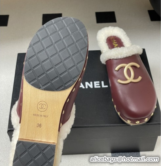 > Shoes Plaza > Chanel Shoes > Shop Duplicate Chanel Calfskin Mules with Shearling CH102003 Burgundy