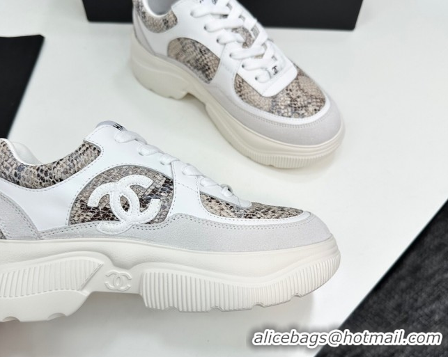 Hot Style Chanel Calfskin and Snakeskin Printed Leather Platform Sneakers Grey 2025 CH110103 1101026