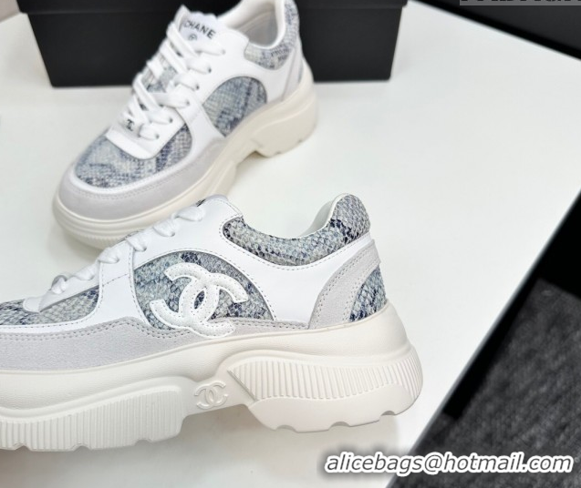 Buy Discount Chanel Calfskin and Snakeskin Printed Leather Platform Sneakers Blue 2025 CH110103 1101027