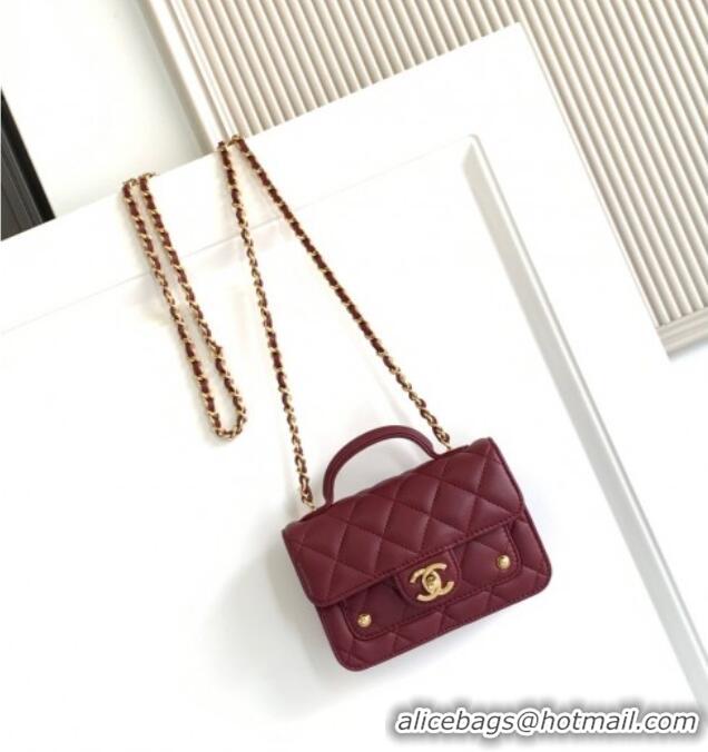 Inexpensive Chanel Shiny Lambskin Clutch with chain and Top Handle Bag AP4675 Burgundy 2025
