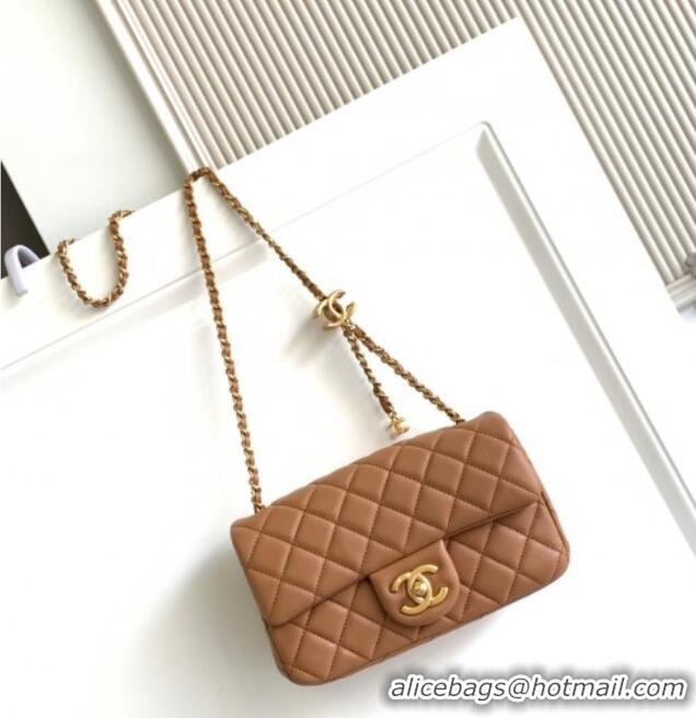 Original Cheap Chanel Shiny Lambskin Mini Flap Bag with CC Chain AS5759 Brown 2025