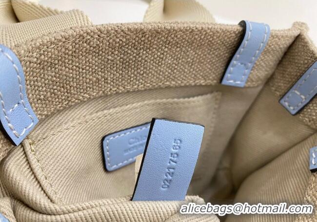 Buy Discount Chloe Mini Woody Tote Bag in Linen Canvas and Calfskin Leather 1120 Light Blue 2025