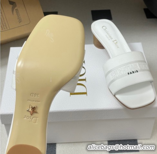 Top Design Dior Dway Heel Slides Sandal 4cm in Grained Calfskin Leather White 0822073