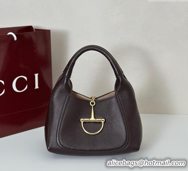 Buy Discount Gucci Softbit Leather Medium Shoulder Bag with Oversized Half Horsebit 837467 Dark Brown 2025