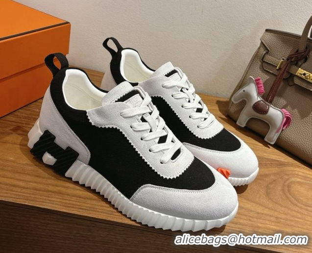 Buy Discount Hermes Bouncing Sneakers in Fabric and Suede Grey/Black 1222029 2026