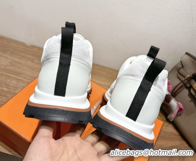 Buy Luxury Hermes Leader Sneakers in Suede and Calfskin Leather White 1023039
