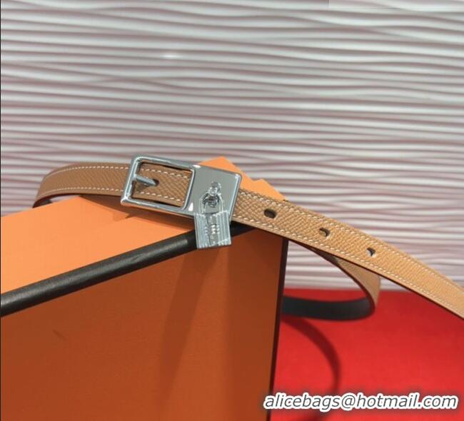 Buy Discount Hermes Lucky Lock Reversible Belt 1.7cm in Calfskin Leather HS091201 Brown/Silver 2025