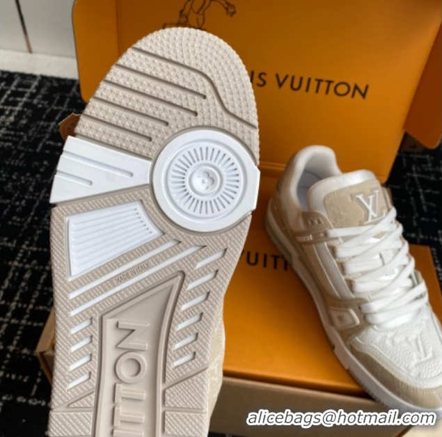 Buy Discount Louis Vuitton LV Trainer Sneakers in Leather and Denim 1AIKOM White/Beige 0829027