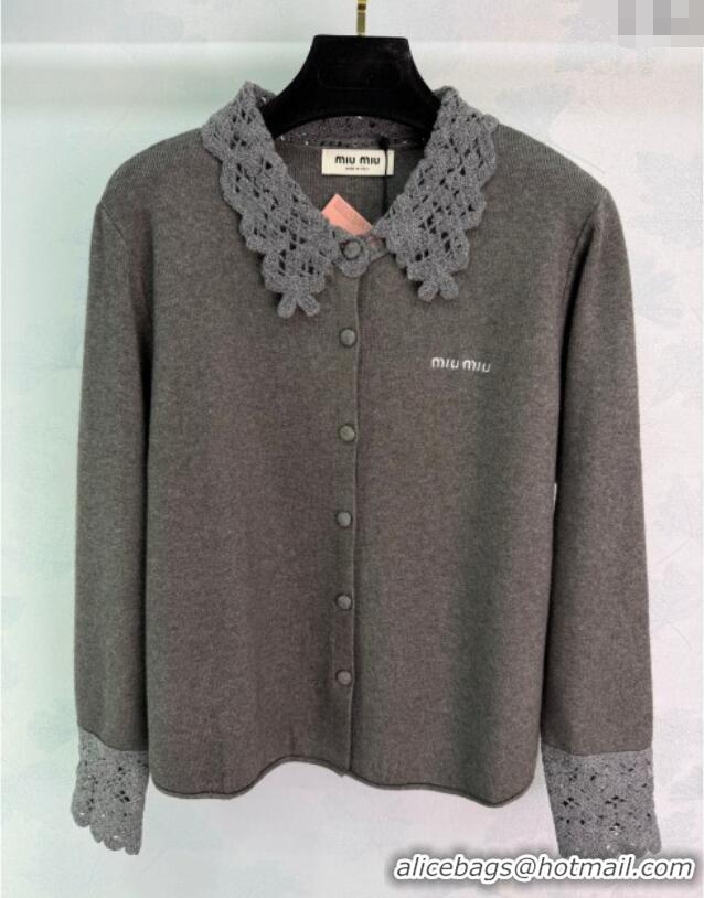 > Clothes Online > Miu Miu Clothes > Buy Discount Miu Miu Wool Cardigan with Crochet MM122513 Grey 2025