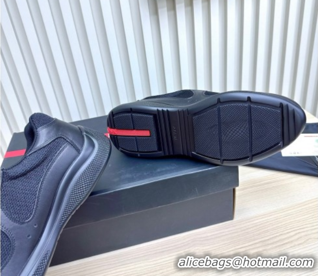 Buy Discount Prada Men's America's Cup Bike Calf Leather and Fabric Sneakers Black 2025 3E6420 1027119