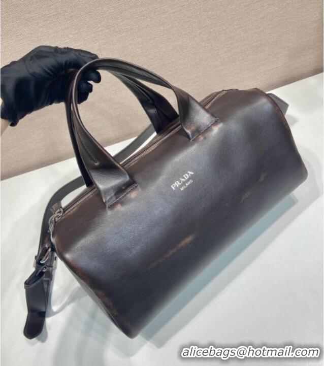 Buy Discount Prada Mens Small Nappa leather duffle bag 2VC046 Dark Brown 2025