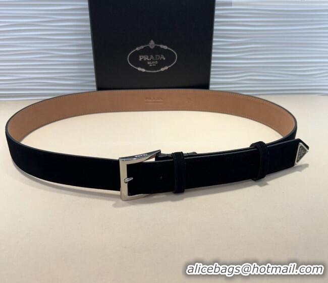 > Belts Mall > Prada Belts > Buy Discount Prada Suede Belt 3.5cm with Silver Pin Buckle 1127 Black 2024