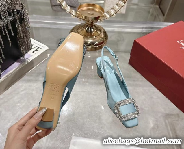 Buy Discount Roger Vivier Belle Vivier Slingbacks Pump 4.5cm in Satin and Strass Buckle Light Blue RV121201 1212002 2026