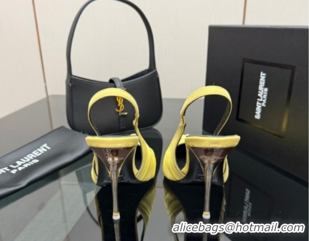 Buy Discount Saint Laurent Deroche Heel Slingbacks Pump 10.5cm in Mesh and Satin Yellow YSL121201 1212059