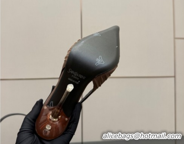 Charming Saint Laurent Deroche Heel Slingbacks Pump 10.5cm in Mesh and Satin Brown YSL121201 1212060