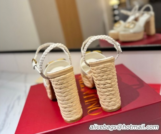 Buy Discount Valentino VLogo Grainy Calfskin Platform Sandals 11.5cm White/Gold 2025 VA082112