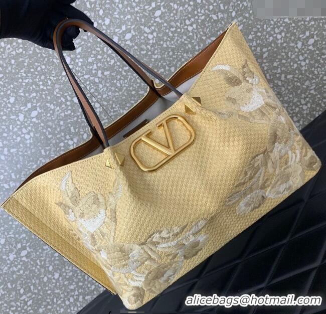 Buy Discount Valentino VLogo Signature Medium Shopping bag in raffia starw with floral embroidery 0880 Beige/White 2025