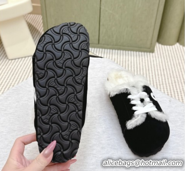 Top Quality Loewe x Birkenstock Laced-up Mules in Suede and Wool 2026 LW103005 Black