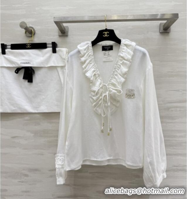 Buy Fashionable Chanel Cotton Blouse CH82132 White 2025
