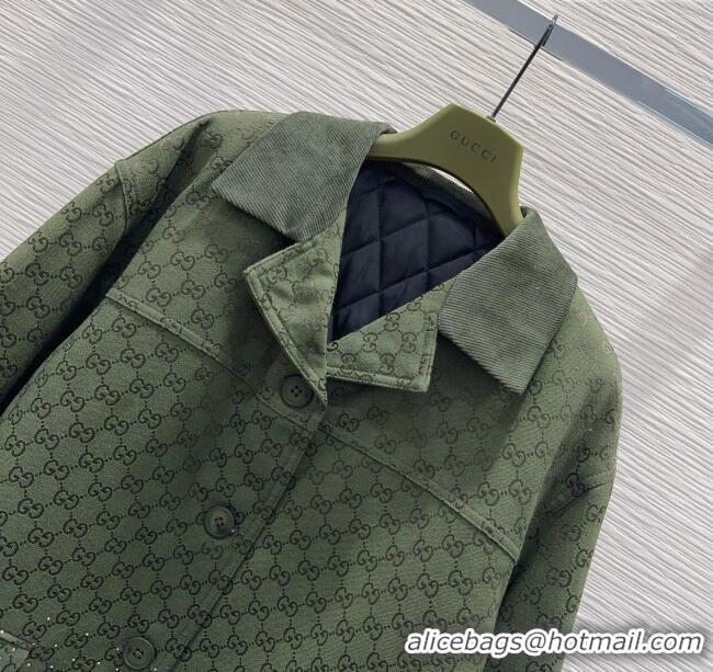 Buy Fashionable Gucci GG and Cotton Padded Jacket with Strass 1015 Green 2025