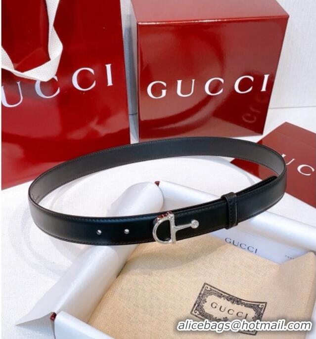 > Belts Mall > Gucci Belts > Buy Fashionable Gucci Thin Belt 2.5cm with Half-Horsebit Buckle in Leather 0912 Black/Silver 2025