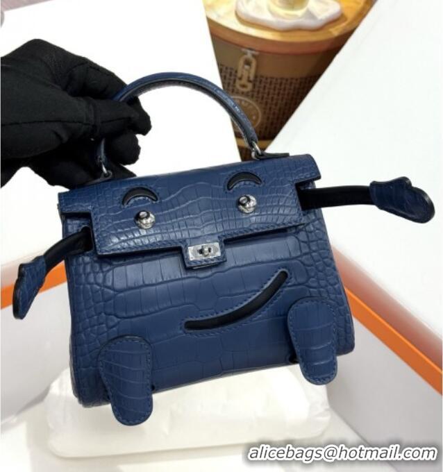 Your Position: Home > Hermes Handbag > Hermes New Bag > Top Grade Hermes Kelly Doll Bag in Matt Alligator Leather H16 Blue 2025 (Handmade)