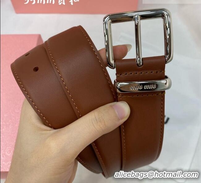 Buy Fashionable Miu Miu Leather Belt 3.5cm 5432 Brown/Silver 2024