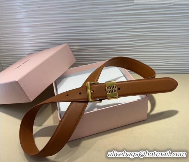 Buy Fashionable Miu Miu Leather Belt 3cm with Pin Buckle MM20250725 Brown 2025