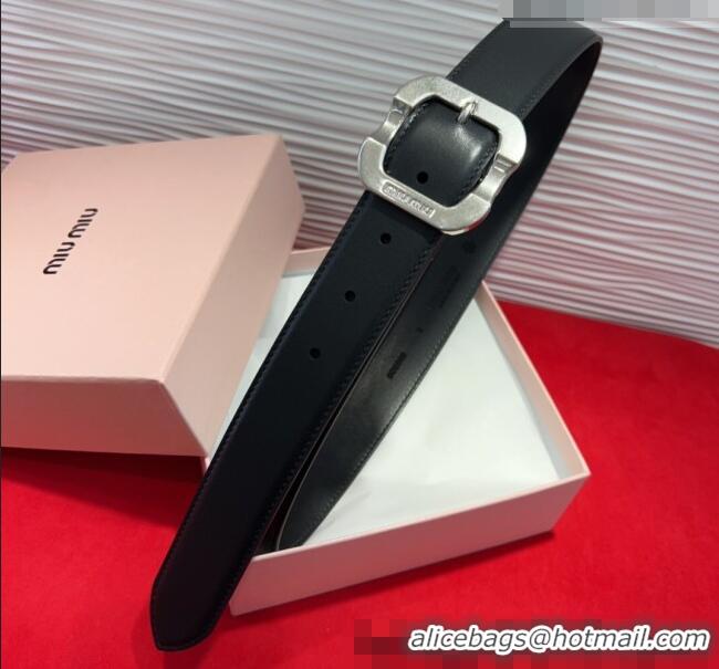 Luxury Discount Miu Miu Calfskin Belt 3cm with MIU Buckle MM102201 Black/Silver 2024