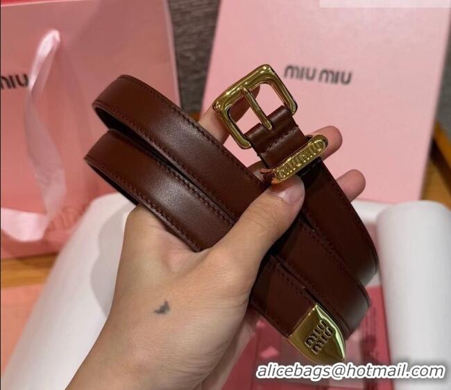 Buy Fashionable Miu Miu Women's Leather Belt 2cm 0617 Brown/Gold 2025