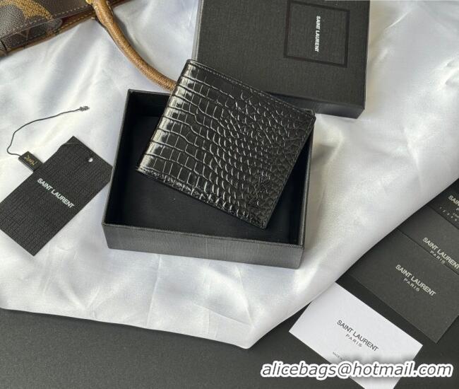 Super Quality Saint Laurent Men's Tiny Cassandre Eastwest Wallet in Crocodile Embossed Leather 607727 All Black 2026